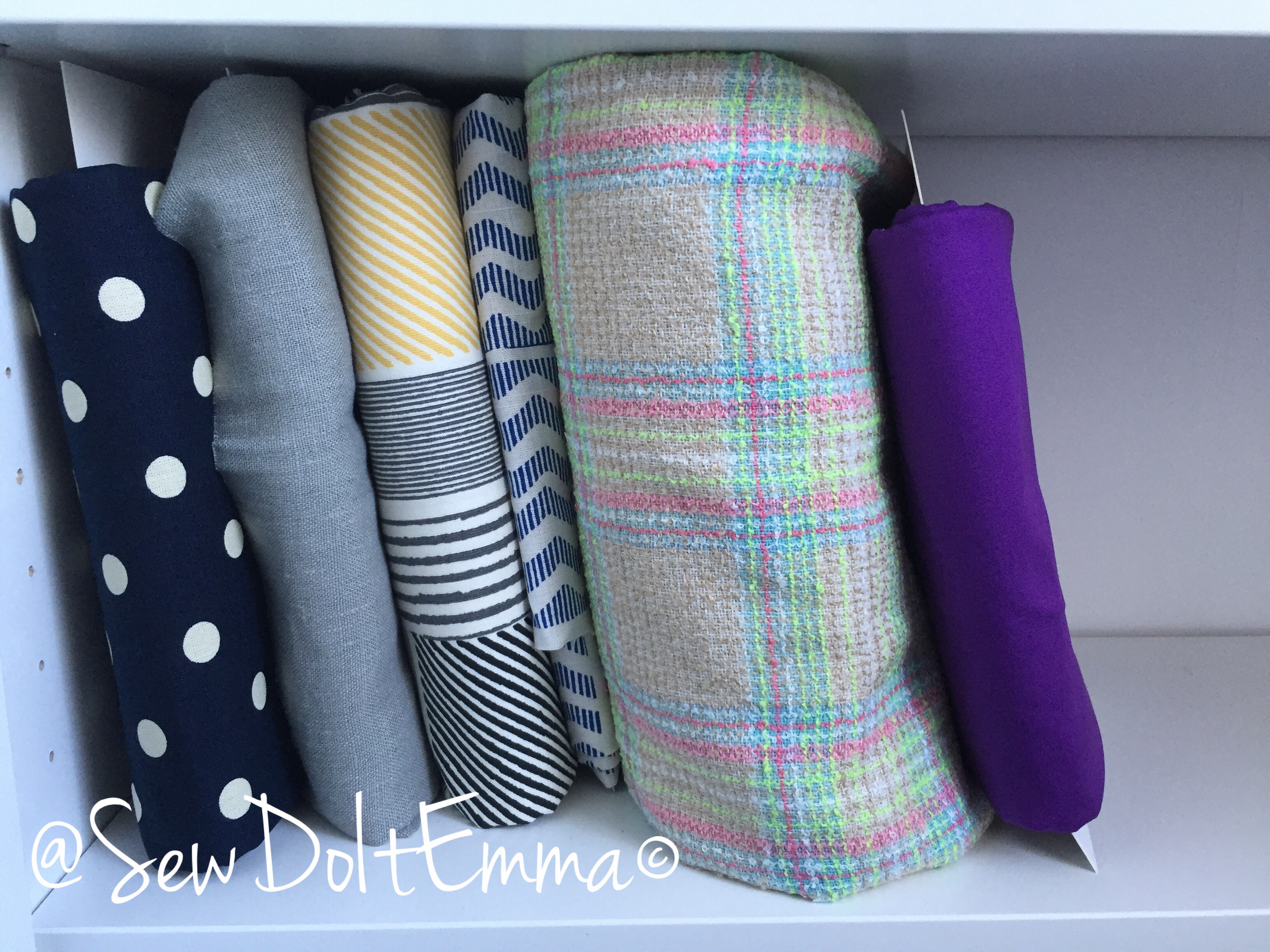 I popped into one of my home bargain stores and picked up these labels. I’ll stick the self-adhesive ones onto the luggage labels. And then with a black marker I will write my code letters P M F – pattern (if the fabric has one allocated, but most of them do), meterage (how much fabric is on the board) and fabric (is it cotton, viscose, wool, jersey, etc).